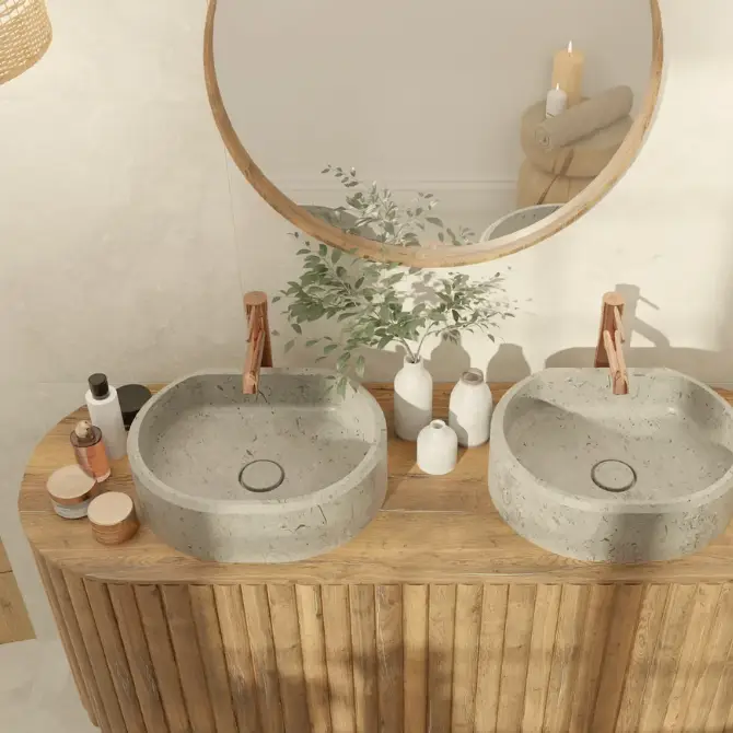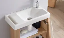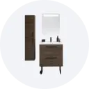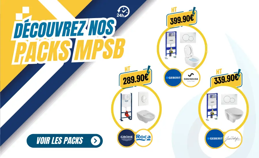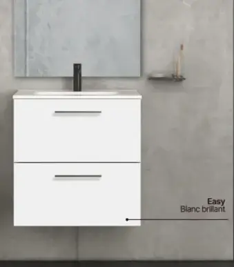 PACK MPSB – Meuble de salle de bains, 70cm, x2 Tiroirs, Blanc brillant + Vasque céramique encastrée + Miroir 100cm + Applique LED