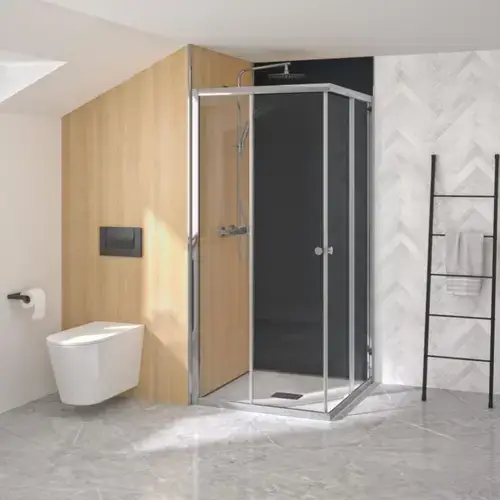 Paroi de douche, verre transparent, accès d’angle, fixe a GAUCHE, 80, profilé chromé – Supra A (KINEDO)