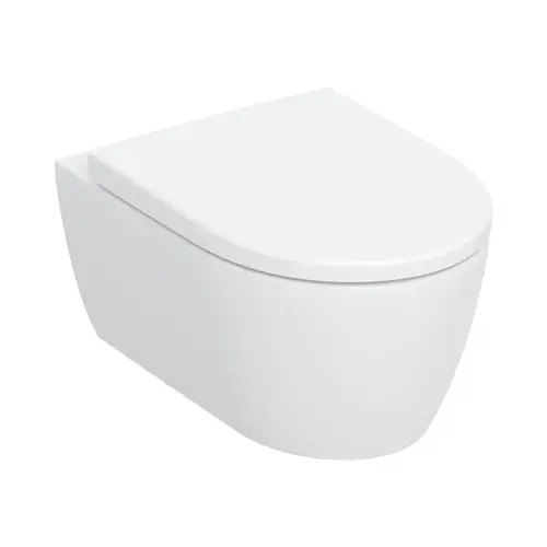 Wc suspendu à fond creux, caréné, Rimfree, avec abattant, blanc – iCon Square (GEBERIT)