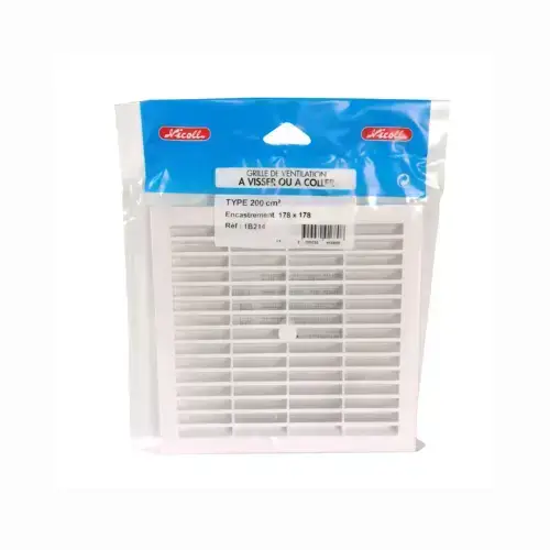 Grille d’aération à visser ou à coller, classique carrée simple 200×200 – (NICOLL)