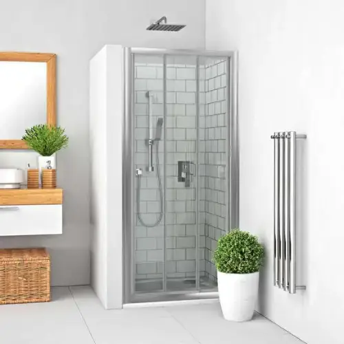 Paroi de douche, Porte coulissante 3 éléments, largeur 90 cm, hauteur 190 cm, Argent poli, Verre clair traité anticalcaire – EQUI (ROTH)