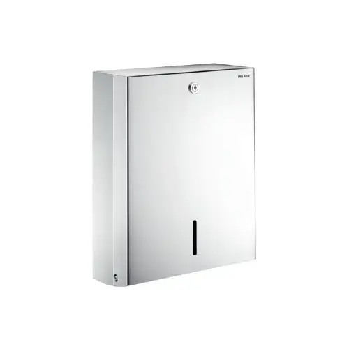 Distributeur MM de papier WC ABS blanc + serrure, Distributeur d’essuie-mains, inox poli brillant – DELABIE