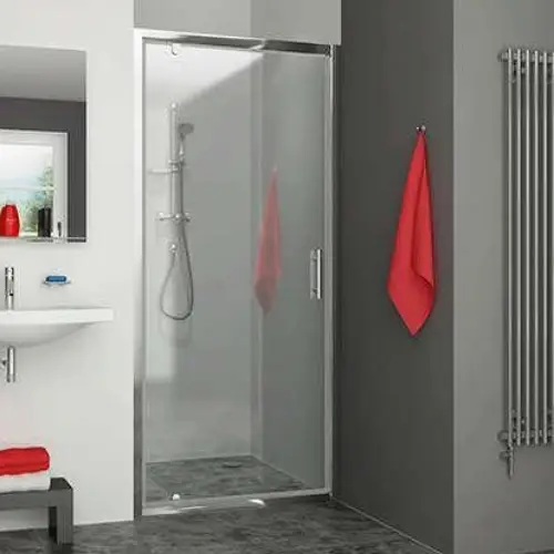 Porte de douche pivotante, pivots excentrés, largeur 800 mm, hauteur 1900 mm, profilé argent poli, verre Clair traité Anticalcaire – EQUI (ROTH)