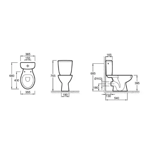 – Cuvette sortie horizontale, 66×35,5cm.
