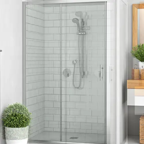 Paroi de douche coulissante, L140 H1.95M, argent verre clair ETC – PROXY (ROTH)