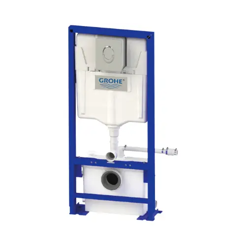 Livré complet avec tube de chasse, tunnel de traversée de cloison, robinet d’arrêt; tube-réservoir cuvette, système d’évacuation universel, sortie verticale ou horizontale avec un seul raccord, visserie complète, fixations murales réglables, tiges filetées et cache-écrous.